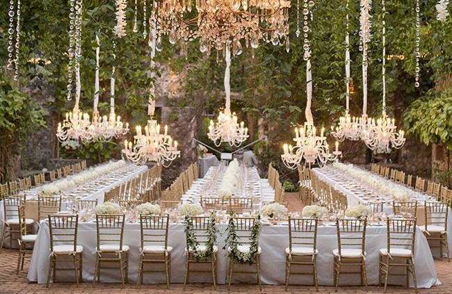 For more originality, or if you want to keep the flowers down and find another hanging decoration, you can go for Hanging Chandelier or if this style doesn’t match your wedding theme, you can still go for hanging lanterns!