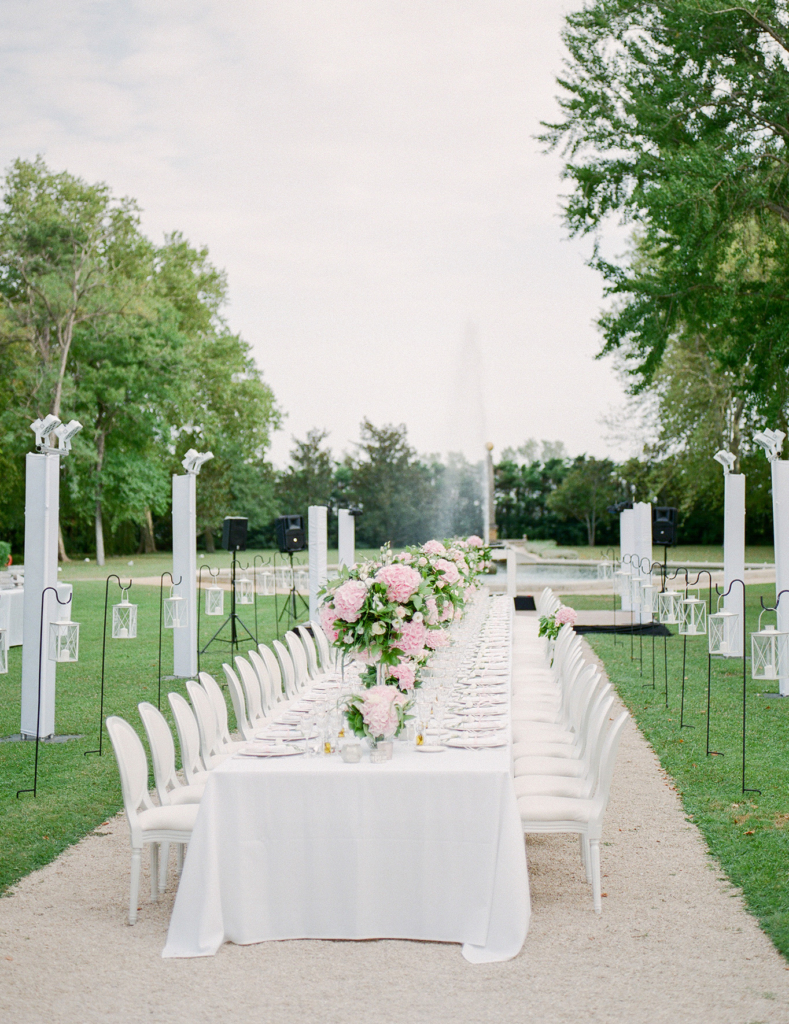 The wedding celebration and each of its stages took place at the castle. Special note for the exquisite decoration of this day: a banquet table along the main path of the garden overlooking the fountain or the facade of the castle.