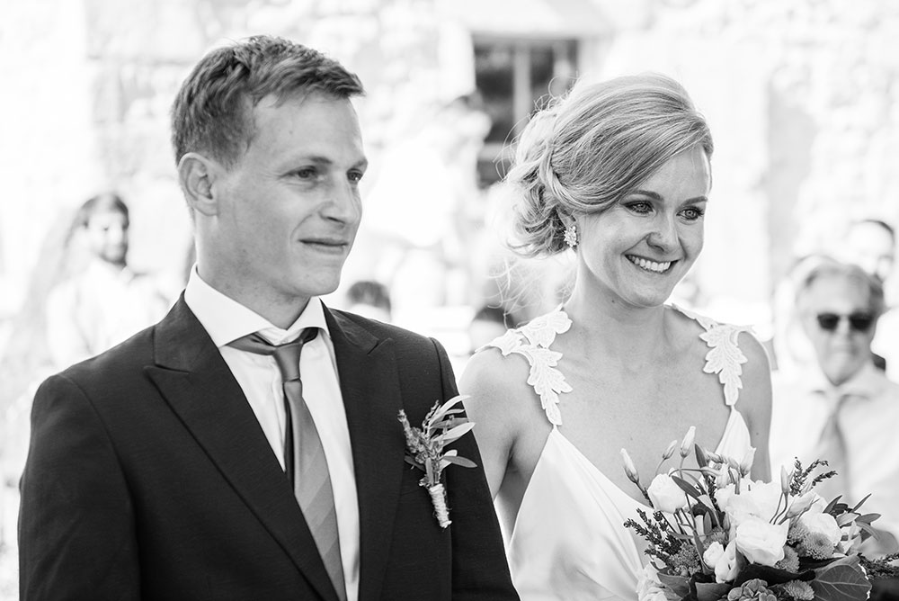 Tous les deux désiraient un mariage très Provence, de l’ancien certes, mais le mot d’ordre était surtout le chic. Nous leur avons donc proposé un superbe lieu de réception, un château, vignoble typiquement provençal avec une vue magique sur le Luberon. Le soleil nous a fait l’honneur d’être au rendez vous pour sublimer un peu plus cette journée.