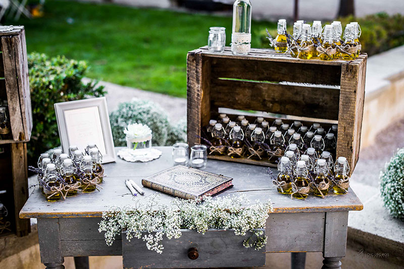 Pour parfaire le décor, elles ont disposé des mignonettes d’huile d’olives personnalisées à l’aide de vieille ficelle, nœud et brins de lavande et de mini compositions florales. Le spot chaleureux, fut aussi équipé de vieux fauteuils confortables pour favoriser la convivialité et le sentiment de bien-être.