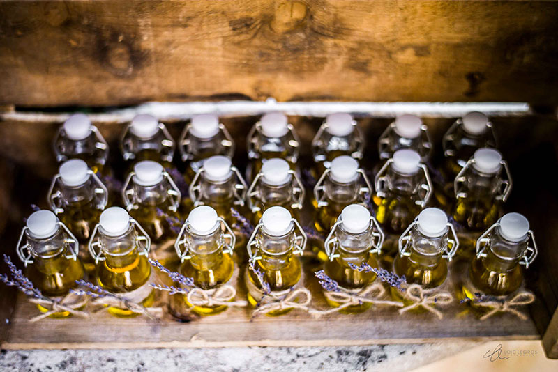 Pour parfaire le décor, elles ont disposé des mignonettes d’huile d’olives personnalisées à l’aide de vieille ficelle, nœud et brins de lavande et de mini compositions florales. Le spot chaleureux, fut aussi équipé de vieux fauteuils confortables pour favoriser la convivialité et le sentiment de bien-être.