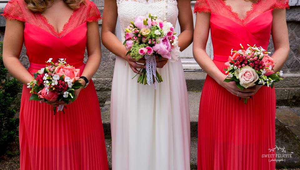 Sans oublier les traditionnelles boutonnières, bouquets de mariée et bouquets de demoiselles d’honneur. Très tendance, les couronnes de fleurs viennent habiller la coiffure des mariées. Et de jolis bracelets fleuris viennent sublimer les poignets des demoiselles d’honneur.